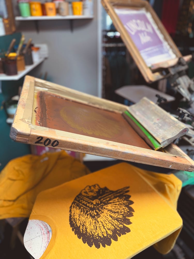 Individually hand printed on the Bella+Canvas, Mustard t-shirt. A very durable and an extremely soft, fitted Mens/Unisex crew neck tee.
