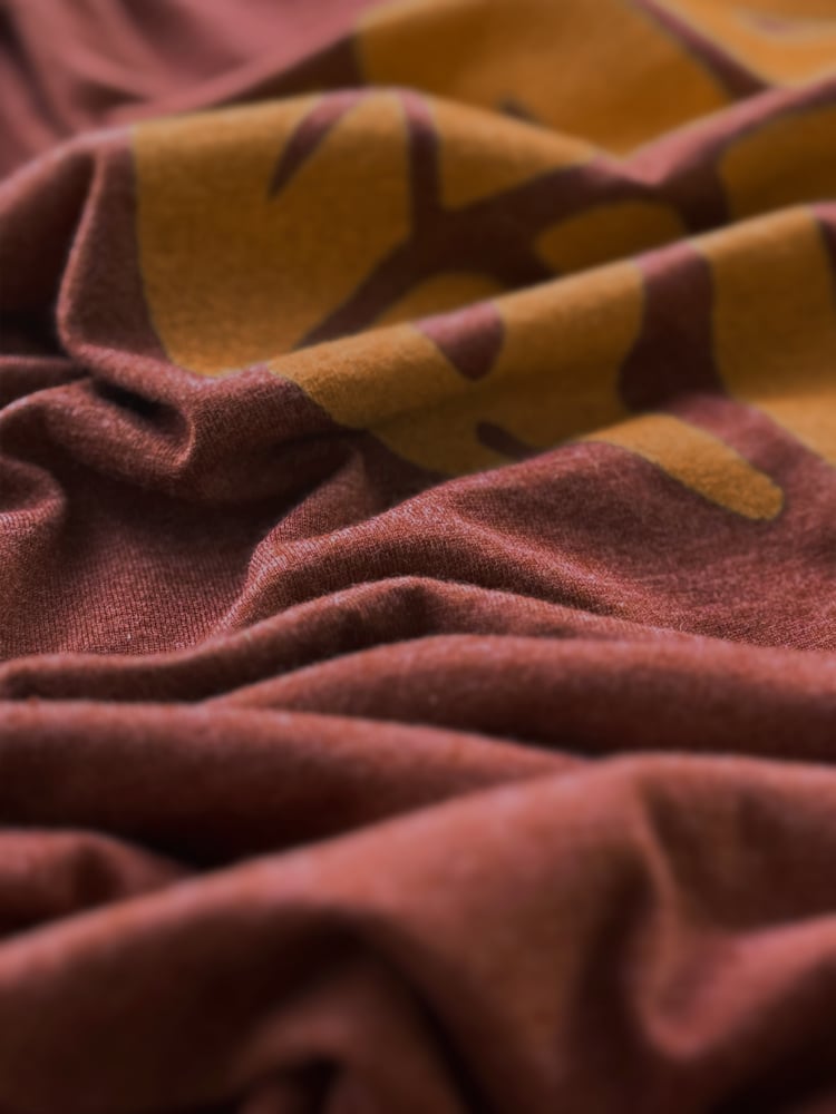 Individually hand printed on the District, Russet Tri-Blend t-shirt. A very durable and an extremely soft, fitted Mens/Unisex crew neck tee.